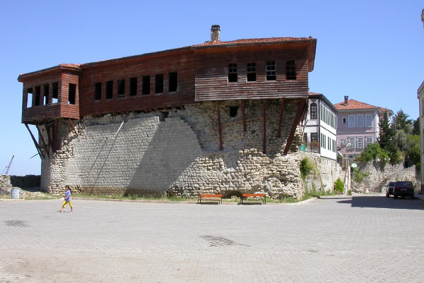 Bu değerli eseri incelerken iki ayrı zamanla, birbirine hiç benzemeyen iki aynı tarihle karşılaşabiliriz. Birincisi, miladi yılın belki de ilk yüz yıllarına kadar gerilere giden tarihlerde yapılmış olan taş duvarları, ikincisi ise Osmanlı mimarisinin damgasını taşıyan ve daha dün denilebilecek kadar yakın olan 18. yy`ın sonlarında yapıldığı sanılan yukarıda sözünü ettiğimiz taş duvarlar üzerindeki ahşap konaktır. Bu konak, “Hazinedar” ailesinin Kale`ye ilk yerleşmiş olan Büyük Ali Bey`in oğlu Mehmet Bey tarafından yaptırıldığı sanılmaktadır. Aşağı-Yukarı iki yüz yıla yakın bir geçmişi vardır. Binanın altındaki taş duvarların yaşı ise çok eskidir. Başlangıçta dört bir yanı suyla çevrili bir ada üzerine o devrin yaşayanlarınca korunmak için kale gibi yaptırılan bu surların içinde bir de kilisesi vardır.